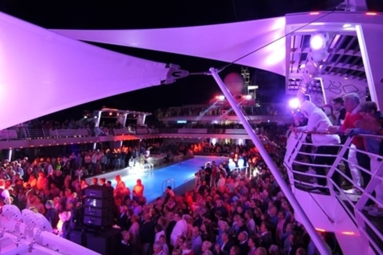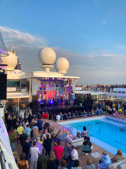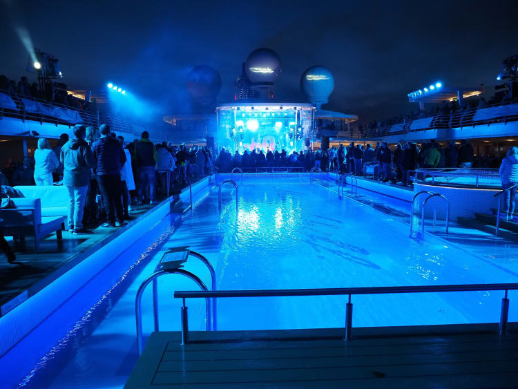 Wie auch in den vergangenen Jahren, ist das Pooldeck der Austragungsort für unsere Konzerte/Shows am Abend. Je nach Wetterverhältnissen empfehlen wir Ihnen warme Kleidung. Falls Konzerte wegen zu schlechtem Wetter nicht auf dem Pooldeck stattfinden können, werden diese ins Theater verlegt. Hier können Sie nach Bekanntgabe der Änderung einfach über "Meine Reise" Ihre Eintrittszeit für den Abend reservieren.