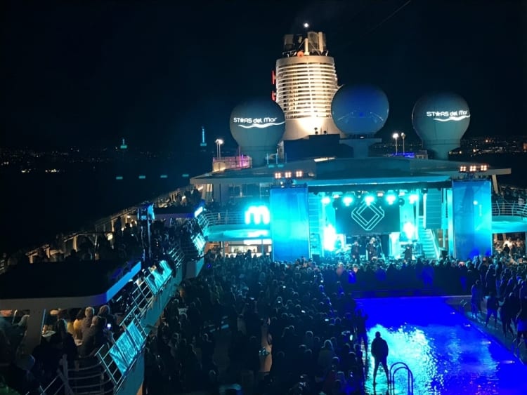 Stars del Mar auf der Mein Schiff 4. Durchfeierte Nächte, die die 80er mit großartigen Live-Performances wieder zu Leben erweckt haben. Ob mit der Hermes House Band, den Wheather Girls, Extrabreit oder Bonnie Tyler. Die Nächte wurden regelmäßig zum Tag und die Stars der 80er konnten hautnah erlebt werden. Die Tage konnte man entspannt auf Deck oder in den Metropolen der Ostsee verbringen und den Alltag richtig weit hinter sich lassen.