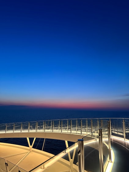 Zum Verweilen und Entspannen lädt das neue Sonnendeck des Champagner Treffs mit gemütlichen Lounge-Möbeln und exklusiven Drinks auf Deck 6 ein. Ein weiteres Highlight an Bord ist der Wellness- und Sportbereich mit der großzügigen Saunalandschaft und seinen spektakulären Panoramafenstern. Lassen Sie die Seele baumeln und verbringen Sie unvergessliche Tage an Bord.
