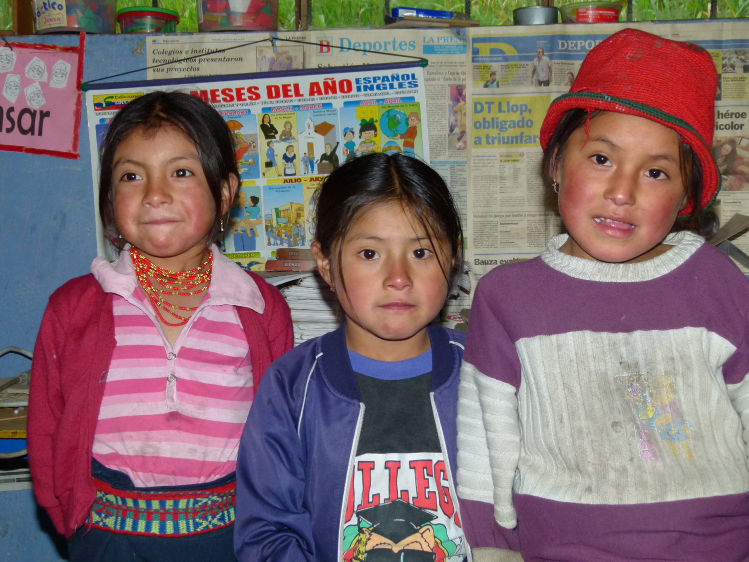 Letzte Weihnachten haben wir die Patenschaft von Jaqueline, Jennifer und Ana Lucia übernommen und konnten seitdem mit der Unterstützung des Projekts "Programa Guagua" der Hilfsorganisation Ayuda Directa dazu beitragen, dass in ihrer Schule im Andenhochland in Ecuador ein Schulgarten errichtet, eine Schulküche erbaut, die sanitären Anlagen renoviert und medizinische Hilfe zur Verfügung gestellt wurde. Zudem konnte mit unserer Unterstützung ein 2-tägiger Schulausflug nach Puyo im Amazonasgebiet organisiert werden, welcher den Schulkindern großen Spaß bereitete.